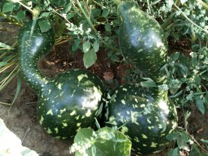 speckled swan gourds! They were barely the size of an 8 oz. water glass a little over a week ago. Two inches of rain and a week of 80-degree temps, and these babies are gorgeous. They’re easily the size of adult feet and they’ve got LOTS of cousins in Papa’s Pumpkin Patch.
