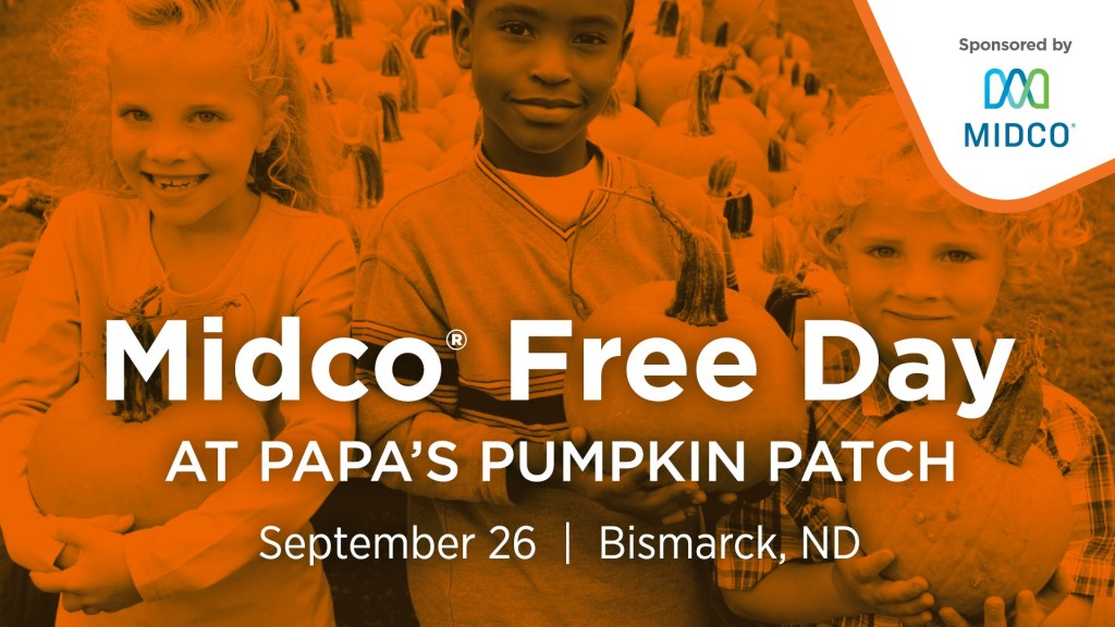 We’re excited to be partnering with Midco again this year for Midco Free Day at Papa’s Pumpkin Patch (Bismarck, ND)! On Thursday, September 26, free admission for everyone and the first 5,000 through the gate receive $5 in Papa’s Pumpkin Cash to spend on activities, concessions, or produce. Gates open at 12 pm. Thank you, Midco, for your continued support and partnership!